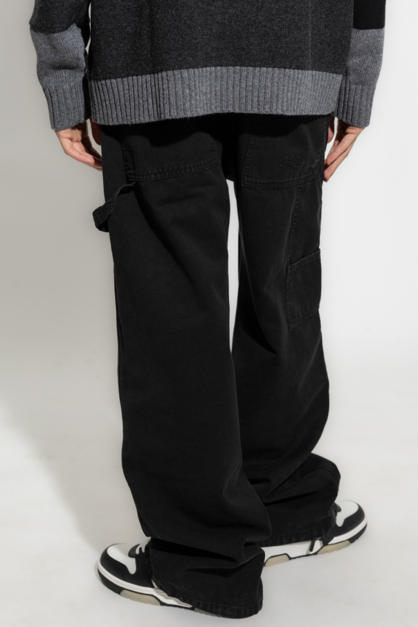Black jeans from Off-White. Made of cotton, this pair features a double waistband, zip and button closure, six pockets and wide legs.