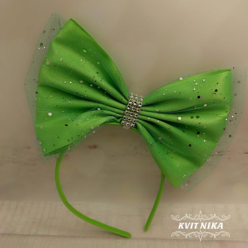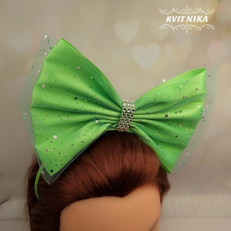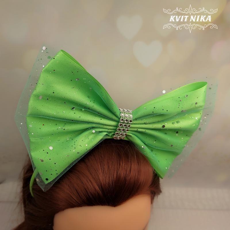 Бант к образу Кукла в зеленом цвете. Крепление на банте универсальное: можно носить как на обруче, так и на заколке.