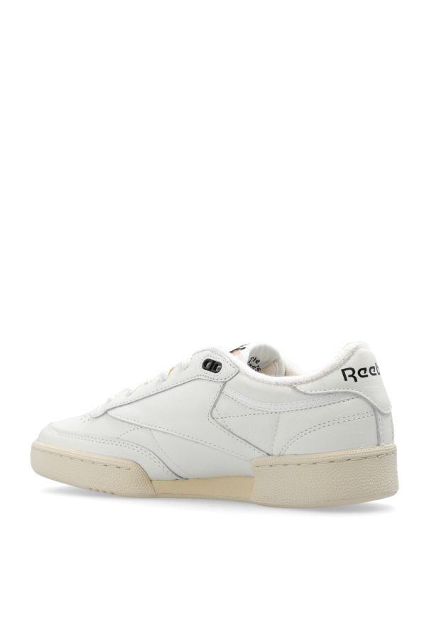 Cream ‘CLUB C 85 VINTAGE’ sneakers from Reebok. Made of leather, this lace-up model sits on a cream rubber sole and showcases the brand\'s logo.