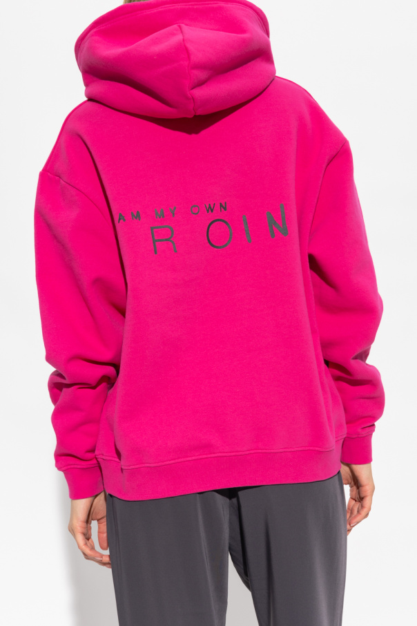 Pink ‘Terza’ hoodie from Iro. Made of cotton, this garment is complete with black prints, drawstring hood, slip pocket and ribbed trims at the hem and cuffs.
