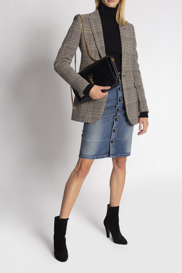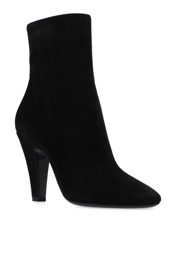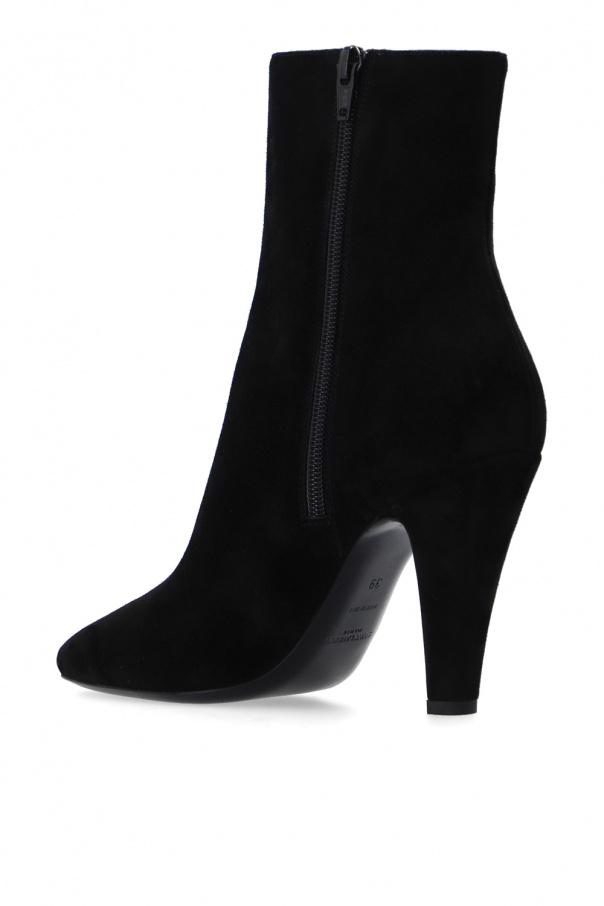 Black ‘68’ heeled ankle boots from Saint Laurent. Crafted from suede, this pair fastens with side zips.