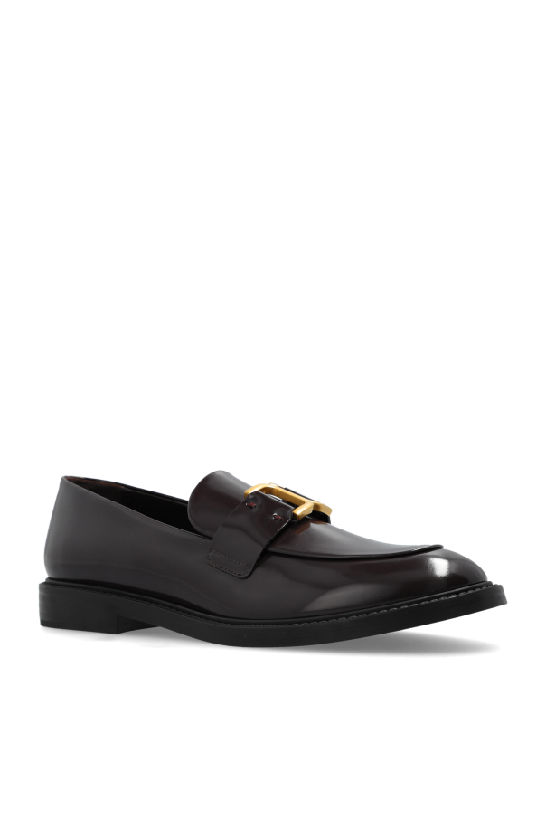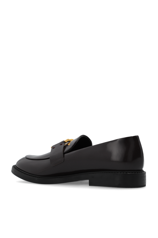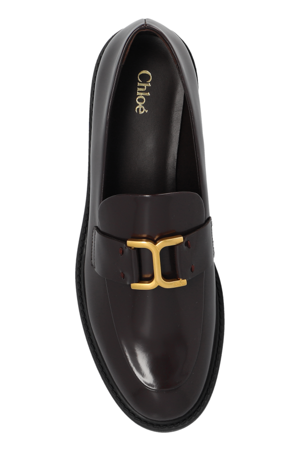 Introducing the ‘Marcie’ Loafers by the illustrious fashion house Chloé. These shoes epitomize elegance and timelessness with their classic slip-on design and flat sole. Crafted from high-gloss patent leather in a rich, dark brown hue, they offer a refined and versatile addition to any wardrobe. The loafers feature a distinguished rounded toe, enhancing their sophisticated appearance. Adorning the front is a striking gold-tone clasp in the shape of an \"H\", a signature decorative element that adds a touch of opulence. Inside, the shoes are lined with soft leather, ensuring unparalleled comfort. The insoles bear the iconic \"Chloé\" branding, a testament to their luxurious origins. Designed for everyday wear as well as more formal occasions, these loafers boast a durable black rubber sole, providing excellent grip and comfort. The contrast between the sole and the dark brown leather further accentuates their unique aesthetic appeal. Why Choose These Loafers? Exclusive design by Chloé, a renowned Parisian fashion house. High-gloss patent leather for a sophisticated look. Gold-tone \"H\" clasp for a distinctive decorative touch. Comfortable leather lining and branded insoles. Durable rubber sole for superior traction and comfort. Versatile style suitable for both casual and formal settings.
