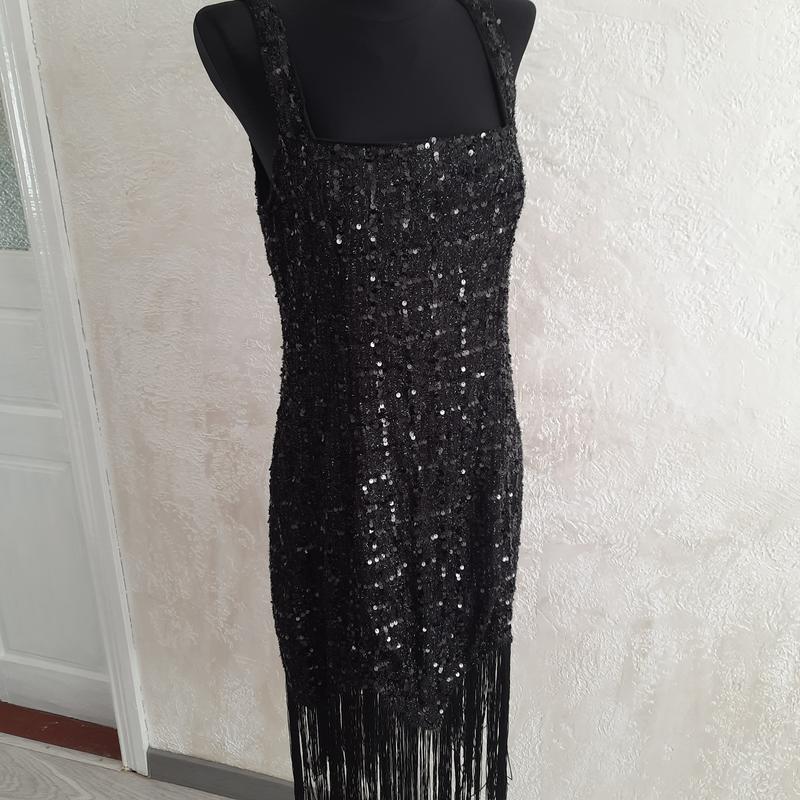 Довжина рукава:Без рукавів ,Особливості:Коктейльне ,Сезон:Демісезон ,Довжина:Міді ,Декор:Паєтки , Бахрома , Люрекс ,Стан: ІдеальнийКолір:- Чорний