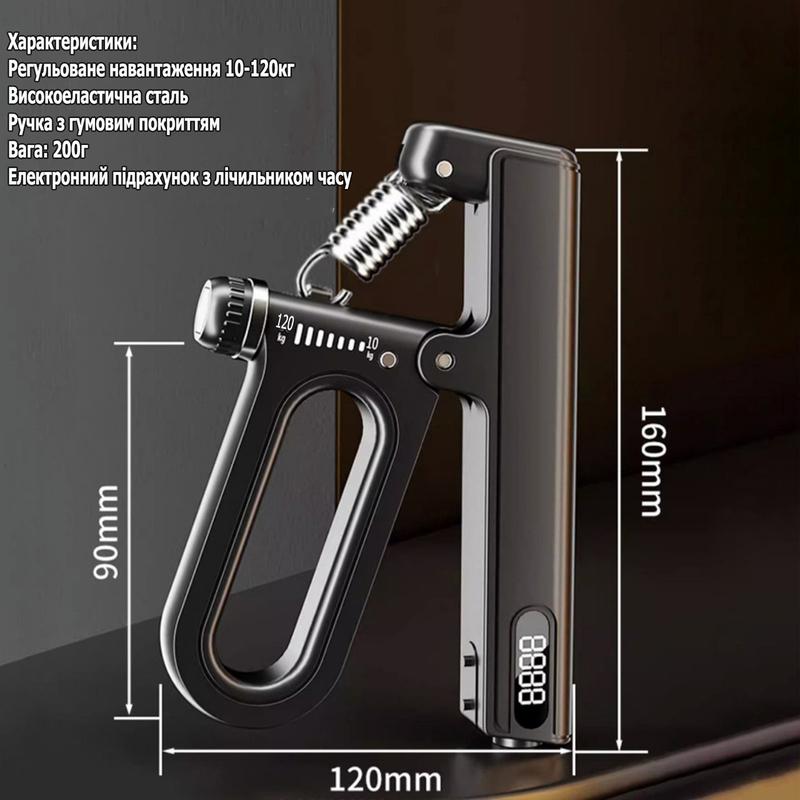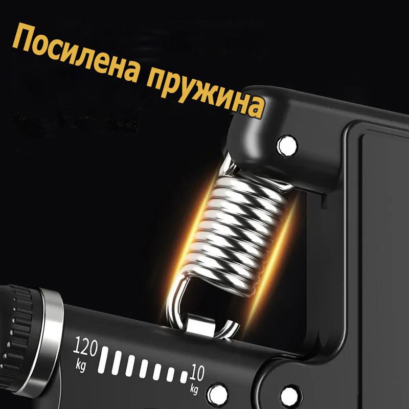 Качественное изготовление и заводская сборка устройства.Кистевой эспандер с максимальной нагрузкой в 120 кг и счетчиком нажатий - это