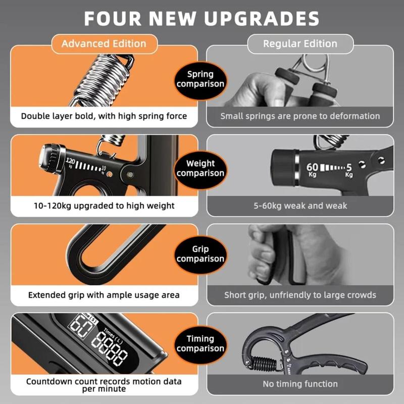 амортизируют нагрузку, уменьшая негативное влияние на суставы и мышцы.Кистевой эспандер с максимальной нагрузкой 120 кг и счетчиком нажатий является