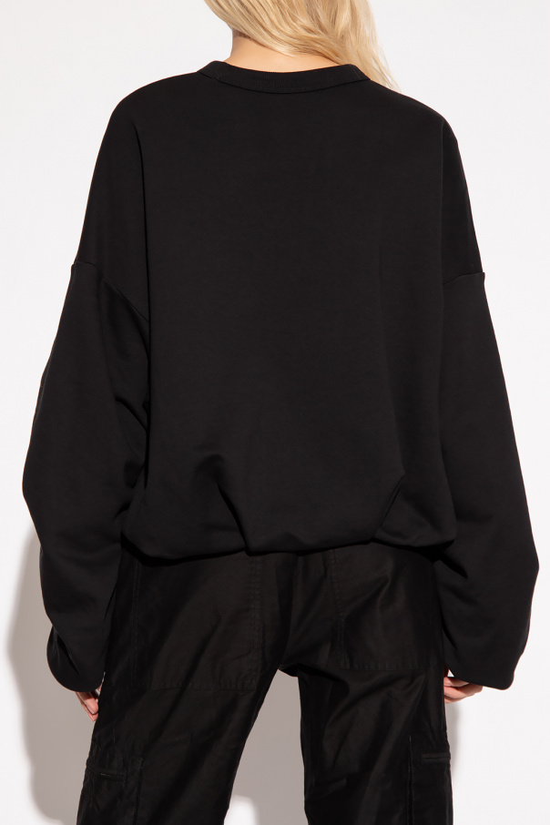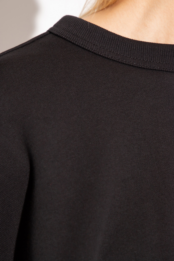 Black crewneck sweatshirt from Dries Van Noten. Crafted from cotton jersey, this style features an oversize silhouette, distinctive draping and cropped sleeves.