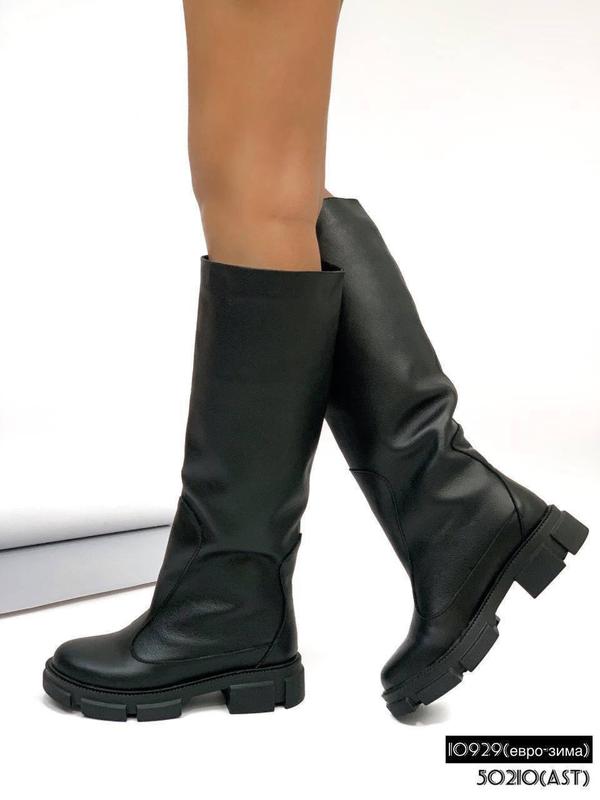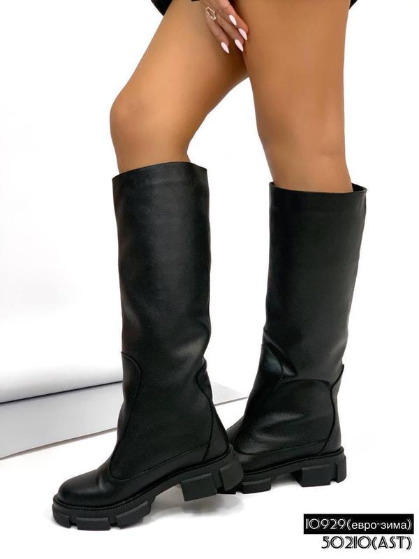 Сапоги трубы евро-зима черная кожа. Цена 2200 грн