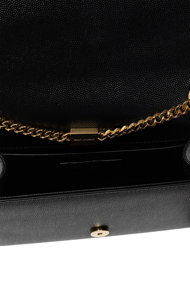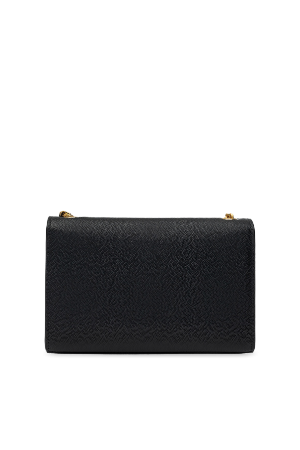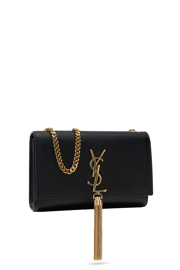 Black ‘Kate’ shoulder bag from Saint Laurent. Crafted from grain leather, this item has a snap fastening, metal logo detail with tassels on the front, chain shoulder strap, gold-tone metal hardware and one internal compartment with one slip pocket.