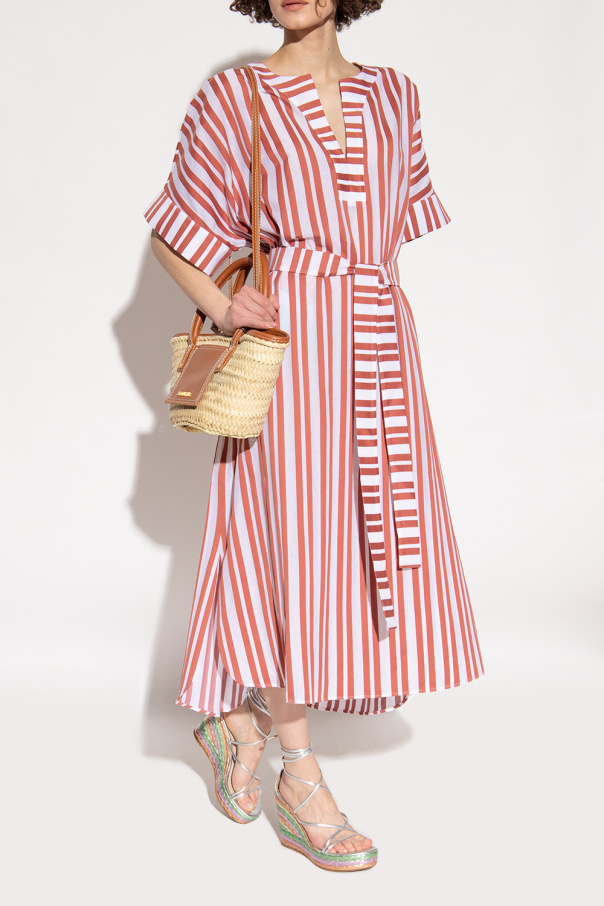 Silver-tone ‘Ines’ wedge sandals from Sophia Webster. Made of leather, this pair features ankle ties, wedge with a multicolored woven raffia with a metallic effect and brown rubber sole.