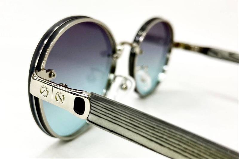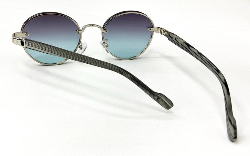 Солнцезащитные очки круглые безоправные с серо-голубой линзой и тоненькими пластиковыми дужками