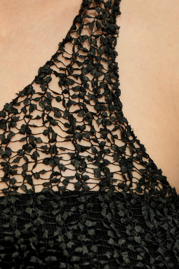 Black openwork tank top with a round neck from Maison Margiela. Made of textured fabric.