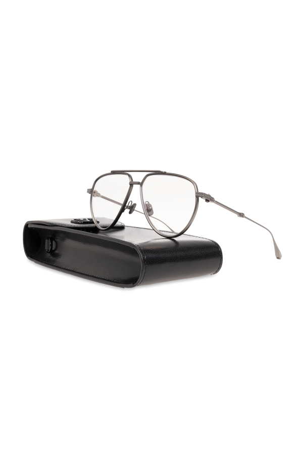 Introducing the exquisite ‘V-STUD II’ prescription glasses from the esteemed Valentino Eyewear collection, a paragon of modern sophistication and style. Crafted with precision, these aviator-style glasses feature large, subtly tapering lenses set in a durable metal frame, exuding an air of elegance and resilience. The refined gray color of the frame bestows a versatile charm, making them an impeccable choice for enhancing a wide array of ensembles, from formal wear to casual outfits. The meticulous attention to detail is evident in the design\'s slender metal temples and intricate hinge work, hallmarking Valentino Eyewear\'s commitment to quality and distinctive style. Accompanied by a sleek, black case that suggests the glasses\' luxury and exclusivity, the ‘V-STUD II’ is not merely an accessory but a statement of unparalleled taste. Constructed entirely of 100% titanium, these glasses promise not only unmatched durability but also a lightweight comfort, ensuring an optimal wearing experience. The minimalist and contemporary design highlighted by the delicate accents on the earpieces positions the ‘V-STUD II’ as a quintessential accessory for the fashion-forward individual. Why Purchase This Product? Elegant Design: Timeless aviator silhouette with a modern twist. Premium Quality: Crafted from 100% titanium for durability and lightness. Versatile Style: The neutral gray palette ensures compatibility with various fashion choices. Attention to Detail: Unique design elements indicative of the Valentino Eyewear brand. Exclusive Accessories: Comes with a high-quality protective case.