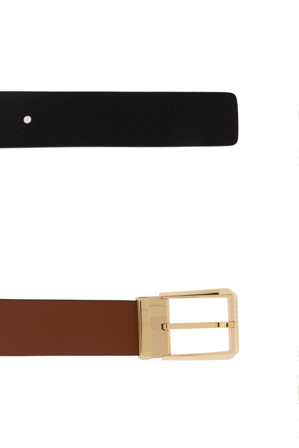 Introducing the quintessence of luxury and versatility: the Reversible Belt from the esteemed FERRAGAMO collection. Crafted with meticulous attention to detail, this exquisite accessory is a testament to the renowned designer\'s commitment to quality and elegance. Made from 100% Calf Leather, the belt boasts a rich, brown hue on one side and a classic black on the reverse, offering two sophisticated looks in one. The texture and sheen of the leather speak volumes about its premium quality, ensuring durability and a lavish feel. The centerpiece of this accessory is its large, rectangular buckle with rounded corners, plated in a striking gold finish. This buckle not only adds a touch of opulence but also features a distinctive engraved logo, marking it as a genuine piece of the FERRAGAMO legacy. Its innovative mechanism allows for effortless fastening and length adjustment, enhancing the belt\'s functionality without compromising its sleek design. Why Purchase This Product? Versatility: Reversible design offers two color options, maximizing wardrobe compatibility. Luxury: Gold-plated buckle and high-quality calf leather exude sophistication. Signature Detail: Engraved FERRAGAMO logo on the buckle serves as a mark of authenticity and style. Functionality: Easy-to-use buckle mechanism provides comfort and adjustability.