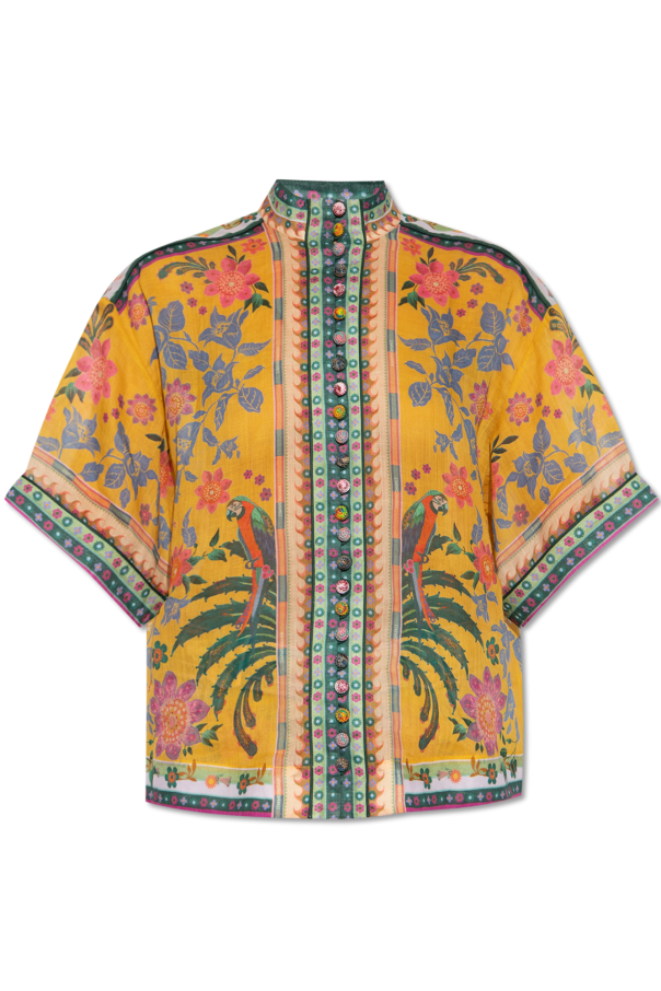 Multicolored loose-fitting shirt from Zimmermann. Crafted from ramie, this garment features button fastenings, a floral pattern, stand collar and short sleeves.
