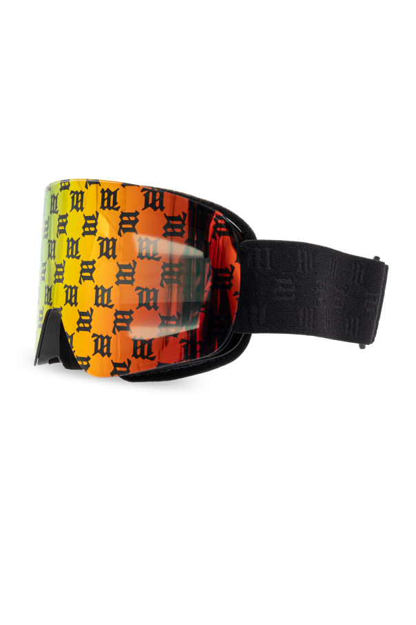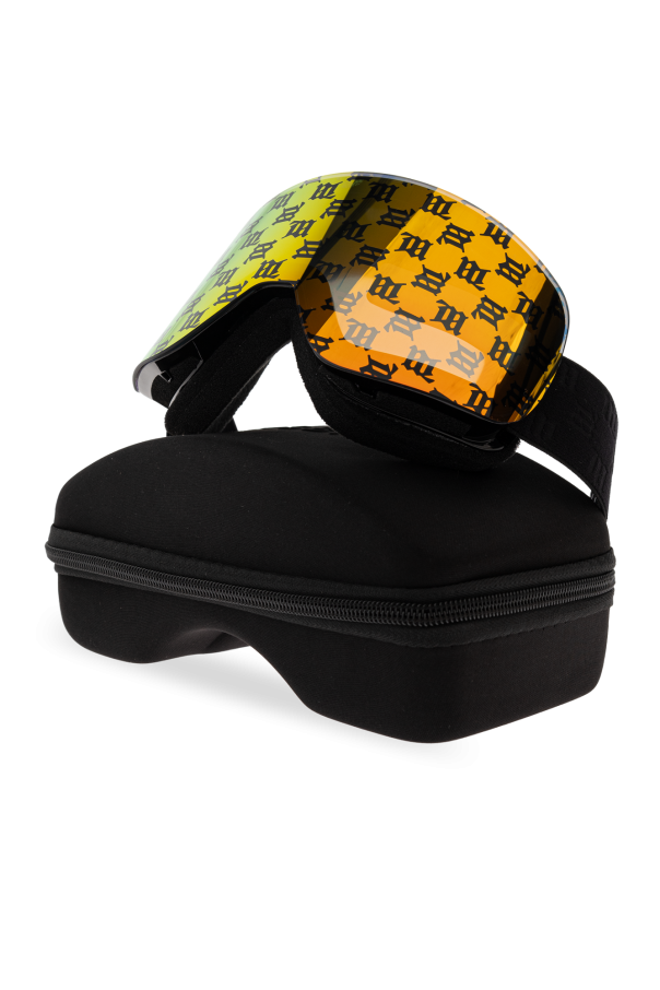 Introducing the Ski Goggles from the exclusive collection by the renowned designer MISBHV. These goggles epitomize the perfect blend of avant-garde design and impeccable functionality, making them an indispensable accessory for your winter escapades. Crafted with a modern, wide frame, these goggles offer an expansive field of vision. The lens features a distinctive gradient, transitioning from yellow to orange and red, while the frame and strap are fashioned from durable black material. The entire lens is adorned with a repeating gothic \"M\" pattern, a signature touch that exudes sophistication and style. The wide, elastic strap ensures a secure and comfortable fit, embellished with a subtle pattern that complements the overall design. Accompanied by a sleek, black protective case, these goggles are as practical as they are stylish, safeguarding your eyewear when not in use. Why Choose This Product? Exclusive Design: Featuring the iconic \"M\" pattern by MISBHV. Superior Vision: Wide frame for an unobstructed view. Durable Materials: Crafted from high-quality, robust materials. Comfortable Fit: Wide, elastic strap for stability and comfort. Protective Case: Comes with a stylish, black case for storage and protection.