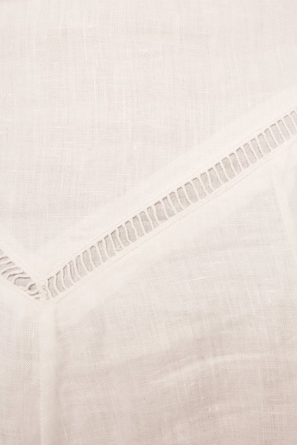 White asymmetrical skirt from Isabel Marant Étoile. Made of linen. Fastened via zip and hook & eye closure on the back. Features openwork trims and frontal slit.