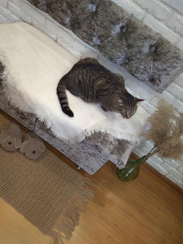 Отлично впишется в современный интерьер в стиле бохо, сканди, прованс, лофт и т.д. Подходит как для спальни/остренной, так и для ванной комнаты. Имеет естественный бежевый цвет, не вызывает аллергии и обладает легким массажным эффектом за счет рельефного плетения)