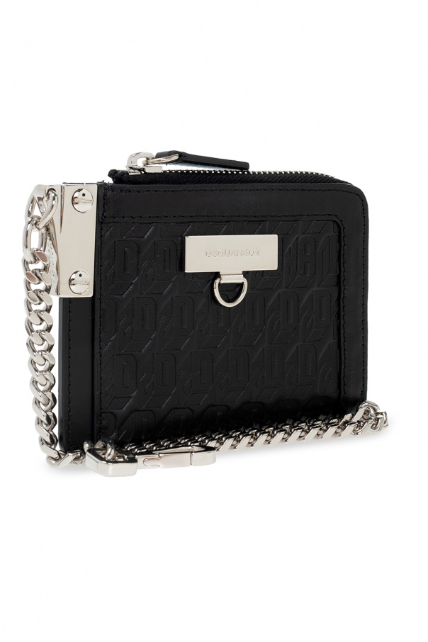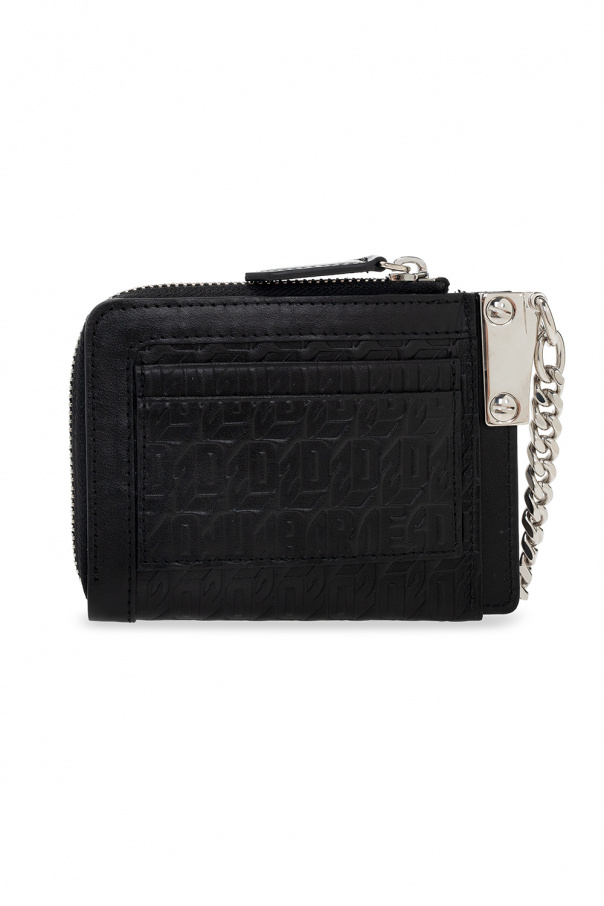 Black wallet from Dsquared2. Crafted from calf leather, this model features a zip fastening, metal monogram logo, metal logo-engraved appliqué, two card slots at the back, chain with a snap hook, silver-tone metal hardware and one internal compartment with six card slots.