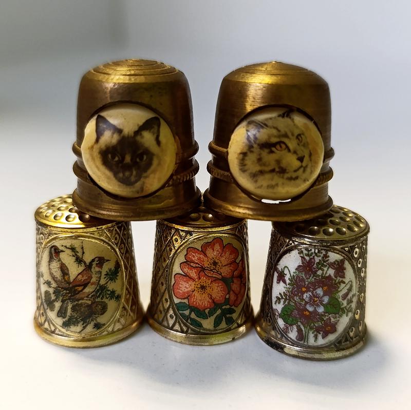 Старинные наперстки. С котиками - из латуни, мордочка котика - керамическая пластина. Остальные три бронза (если не ошибаюсь). Цена указана за 5 штук
