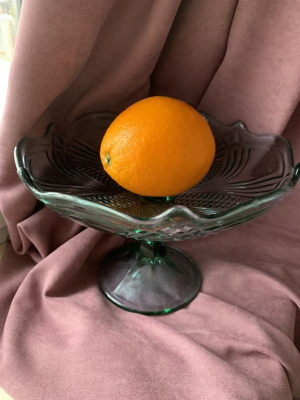 Оригинальная ваза, винтажный предмет декора с широким функциональным предназначением. В ней очень удобно подавать фрукты, конфеты, пирожные, разную нарезку. Прессованное тисненое стекло.