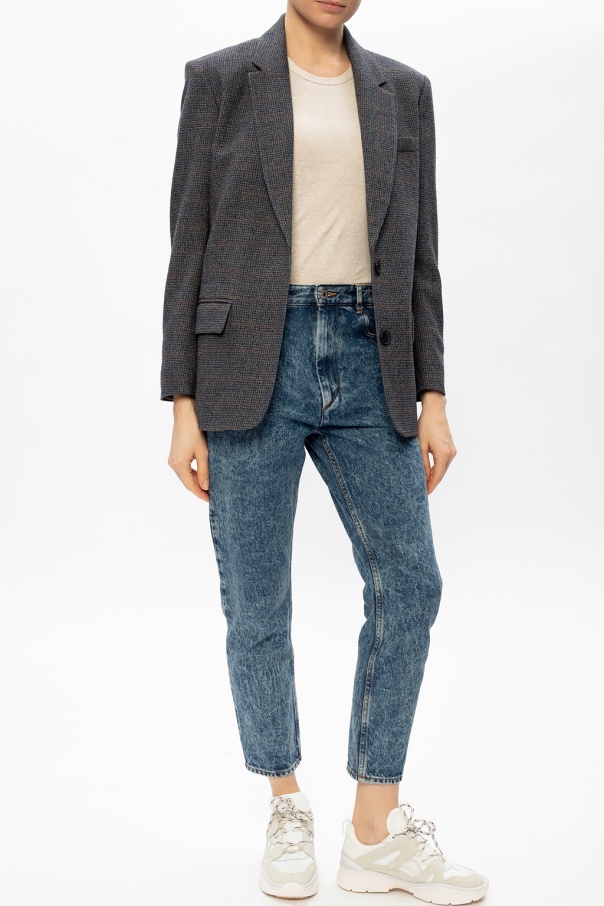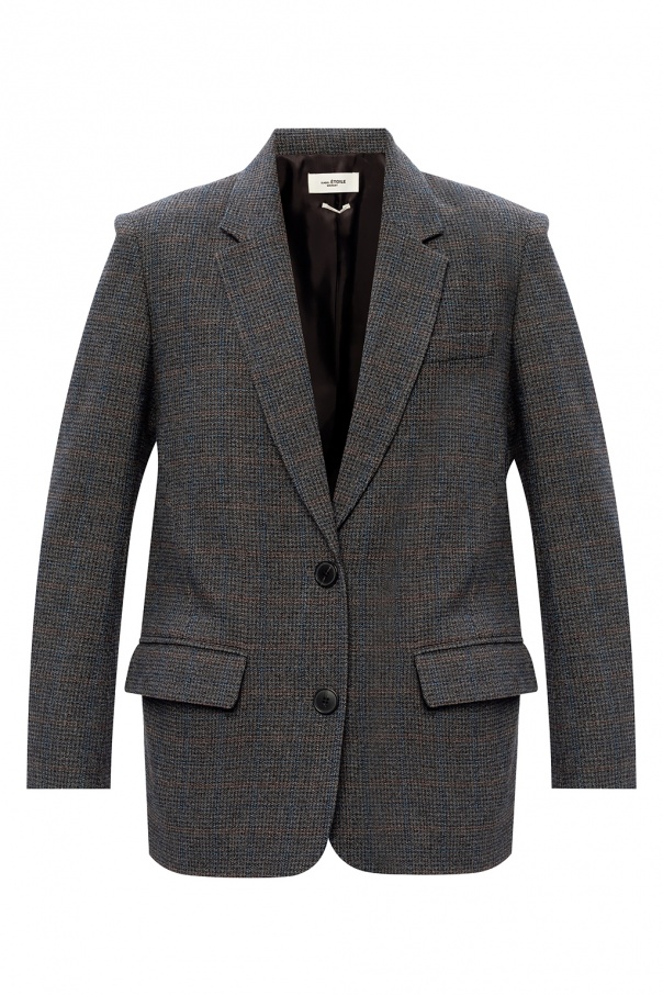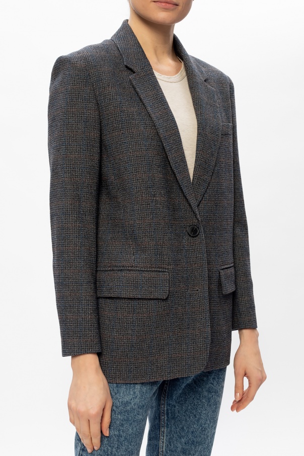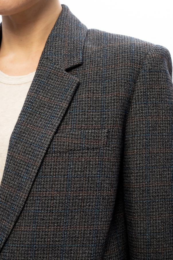 Grey blazer from Isabel Marant. Fastened with buttons, this notch lapel design features a black check pattern, one slip pocket, two flap pockets and long sleeves with button cuffs.