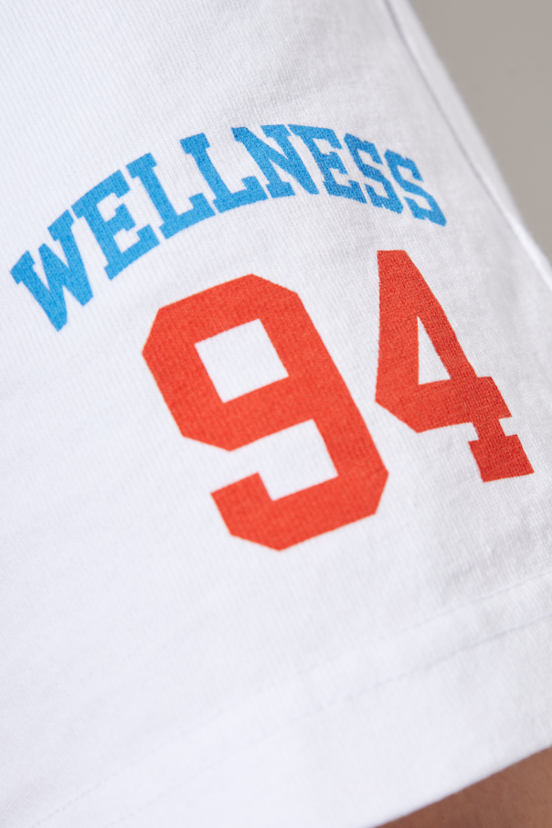 Introducing the epitome of summer comfort and style - the Sporty & Rich Cotton Shorts. Crafted from 100% premium cotton, these white shorts exude a sense of luxury while ensuring breathability and ease on warm days. The relaxed fit promises unrivaled comfort, making them a perfect choice for leisurely days or active afternoons alike. The design boasts an elastic waistband with drawstring closure, allowing for a customizable fit that flatters various body types. A touch of exclusivity is added by the vividly colored \"WELLNESS\" inscription in blue and the striking \"94\" in red on one side, symbolizing the shorts\' connection to the Sporty & Rich ethos of blending wellness with fashion. Additionally, these shorts are not only about style but also functionality, featuring three slip pockets, including a practical rear pocket, for carrying essentials. Why Purchase These Cotton Shorts? Exquisite Material: Made from 100% cotton, offering both comfort and durability. Unique Design: The \"WELLNESS\" and \"94\" details add a distinctive touch, reflecting the shorts\' high-end origins. Versatile Style: The elegant white color and relaxed fit make them a versatile addition to any wardrobe. Practical Features: Equipped with an elastic waistband, drawstring, and three pockets, they combine fashion with functionality.