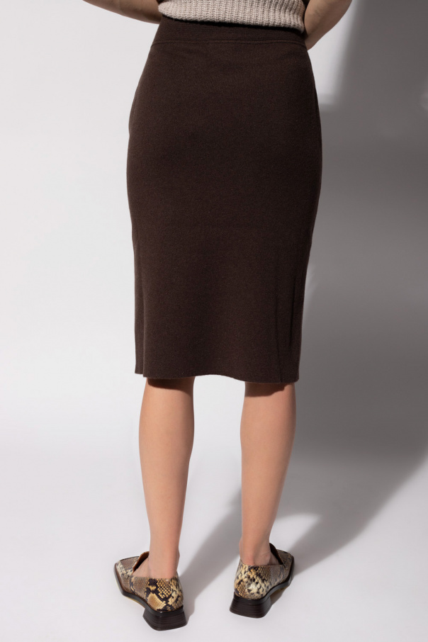 Brown skirt from Agnona. Crafted from cashmere, this design is complete with an elastic waistband.