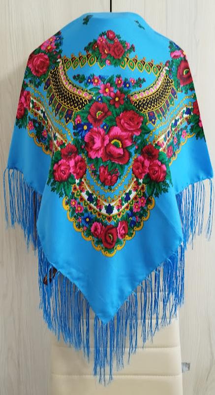 Роскошный украинский платок, с цветами, с шелковыми кистями. Ткань плотная, не скользит. Цвет - голубой. Есть разные цвета.