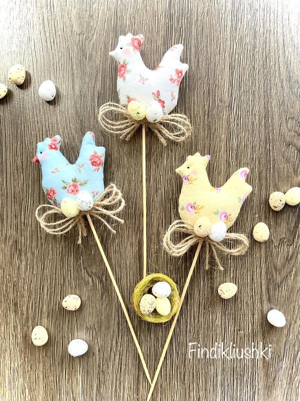 Пасхальні курочки на шпажках (топпери) - чудова прикраса вашого житла, а також милий подаруночок до Світлого свята Великодня. Даний виріб додасть святкової атмосфери та подарує весняний настрій!
