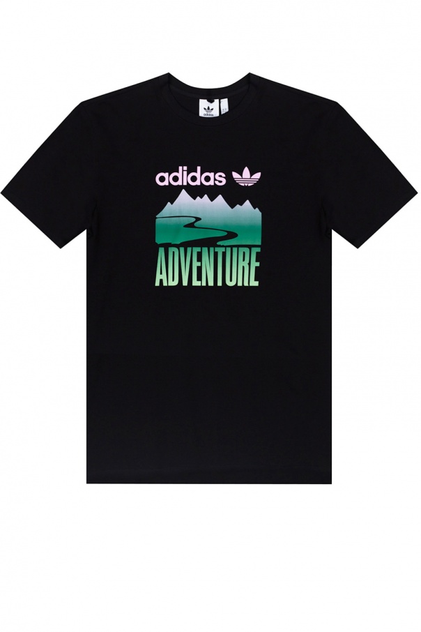 Black crewneck T-shirt from ADIDAS Originals. Crafted from cotton, this item features a green and pink graphic print with the brand's logo.