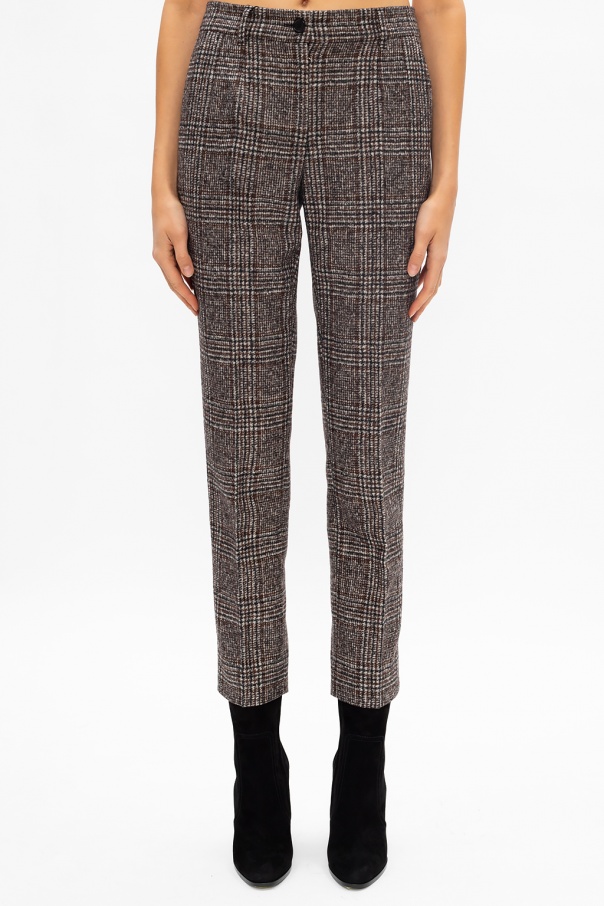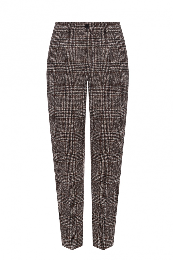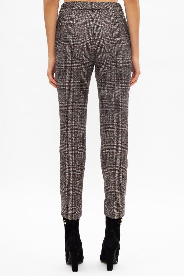 Brown, black and white trousers from Dolce & Gabbana. Trimmed with wool, this tapered design features a zip and button fastening, an embroidered pattern and two front slip pockets.