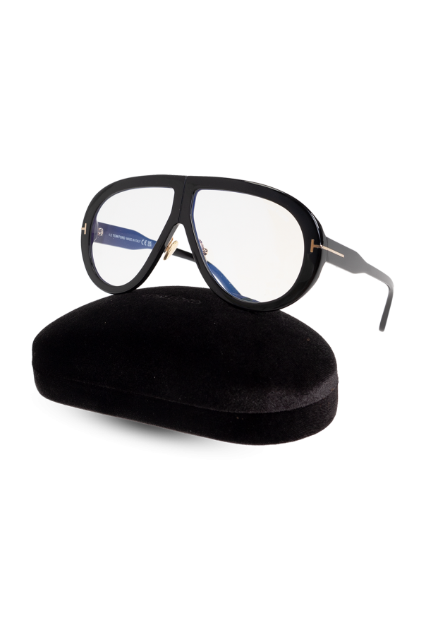 Introducing the Exquisite Prescription Glasses from the exclusive collection by renowned designer Tom Ford, a maestro of modern fashion. These glasses are a testament to his unparalleled aesthetic sensibility. Crafted with 100% Acetate, the black frames exude a sense of solidity and elegance. The large, oval design offers a bold and contemporary look, perfectly suited for both casual and formal occasions. The arms of these glasses are adorned with gold decorative accents and a subtle designer logo, enhancing their luxurious appeal. Transparent lenses and adjustable nose pads ensure a comfortable fit, while the accompanying case underscores the brand\'s attention to detail and quality. Why Choose This Product? Exclusive design by the iconic Tom Ford. Elegant black frames with gold accents. Comfortable fit with adjustable nose pads. Includes a stylish protective case.