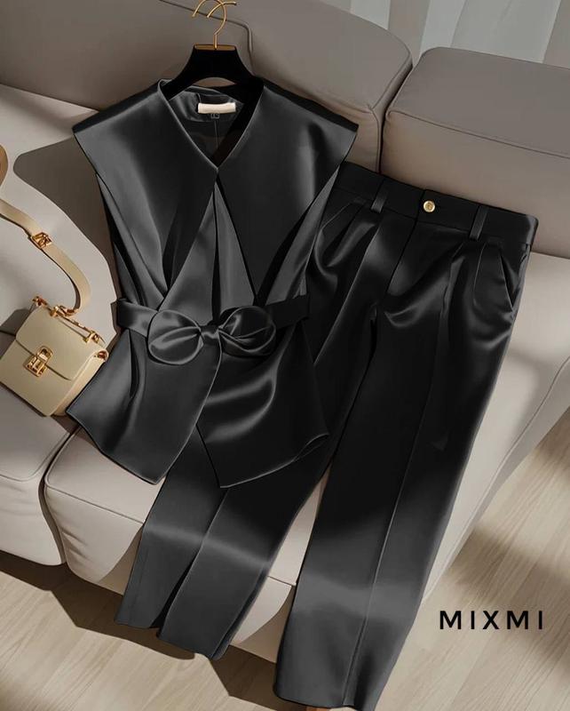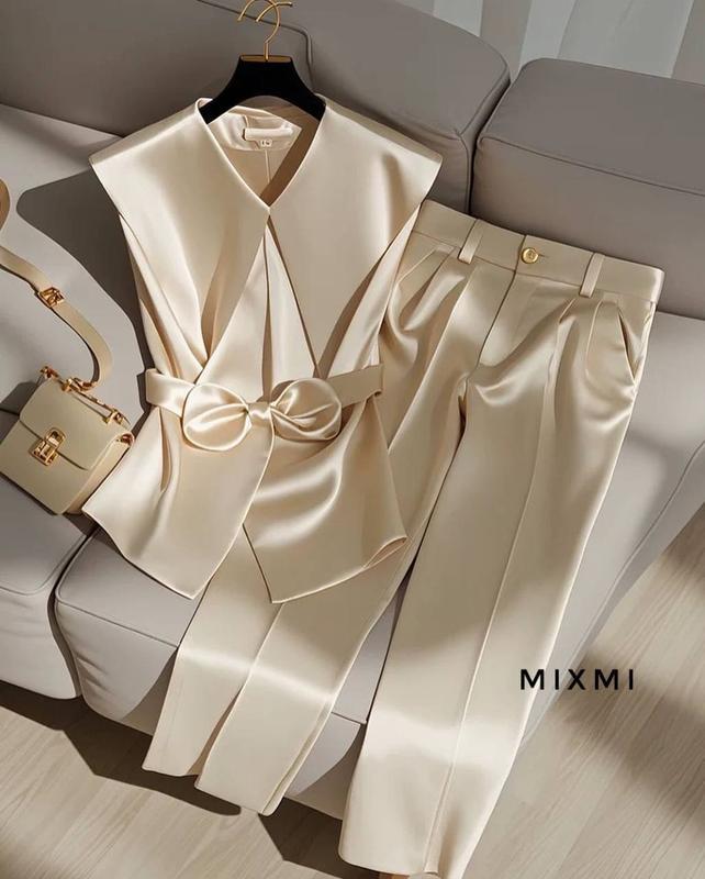 Материал:Шелк ,Вид костюма:Двойка ,Особенности кроя:С высокой талией ,Сезон:Лето , Осень , Весна , Демисезон ,Описание