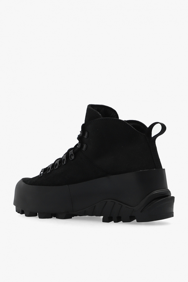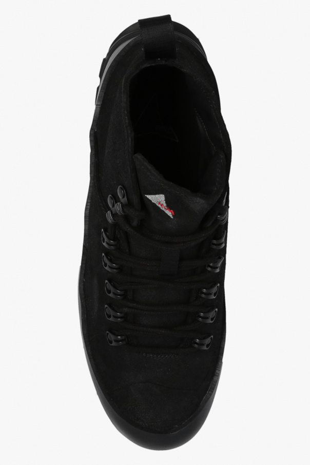 Black ‘CVO’ hiking boots from ROA. Crafted from leather with a vintage effect and trimmed with rubber, this lace-up model features a logo-embroidered tongue, a logo printed on the side, a pull tab at the back and a black Vibram Megagrip toothed tread pattern sole designed for optimal traction and to ensure high resistance to use on roughest surfaces. Swappable white laces included.