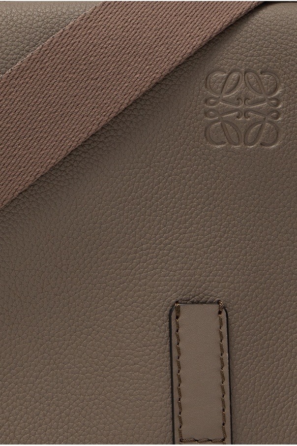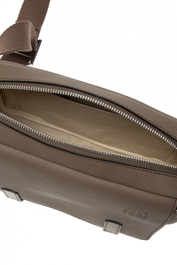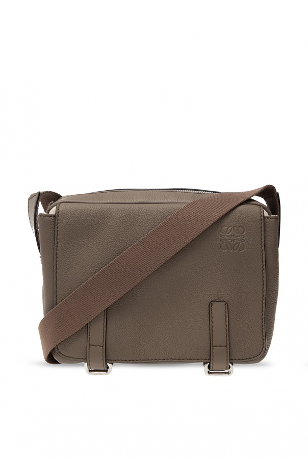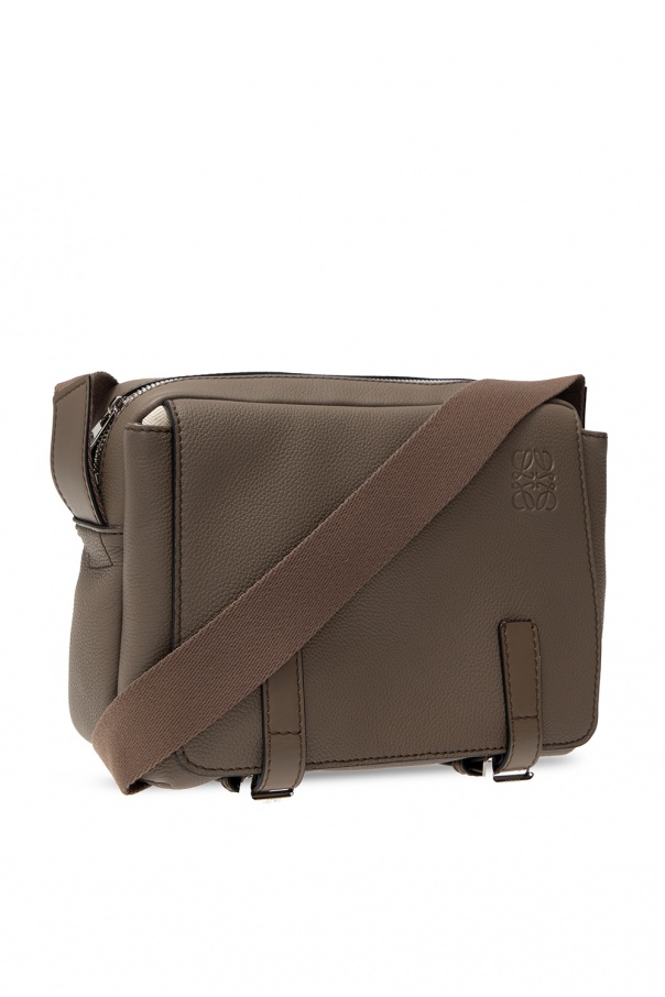 Brown ‘Military’ shoulder bag from Loewe. Size extra small. Crafted from leather, this design showcases an embossed logo for the brand recognition. It is complete with zip closure, central flapped pocket with magnetic press-stud fastening and buckle straps, an adjustable shoulder strap, silver-tone metal hardware and interior with one compartment and one slip pocket.