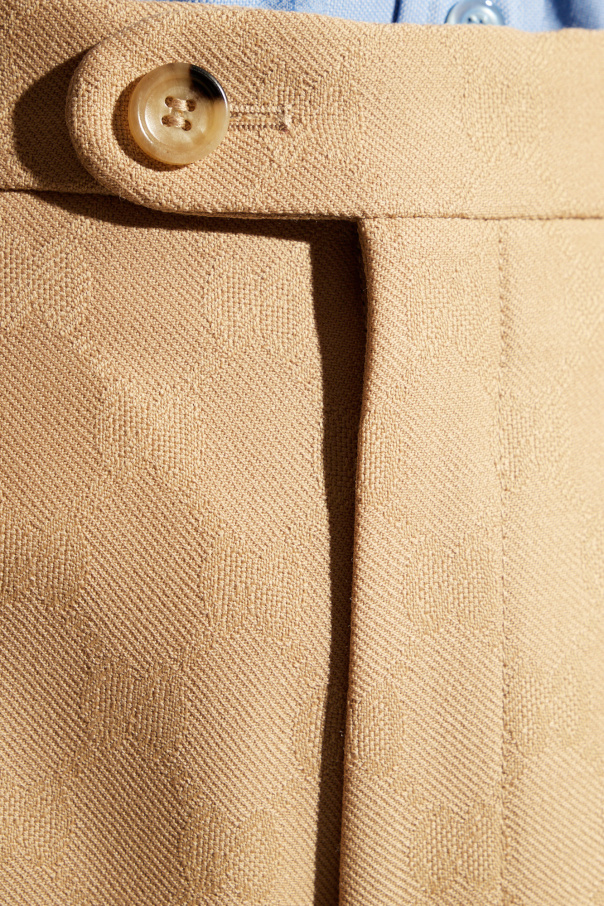 Beige pleat-front trousers from Gucci. Made from wool, this pair falls with straight legs and features a zip fly with a button and hook & eye closure, two slant pockets and two button pockets.