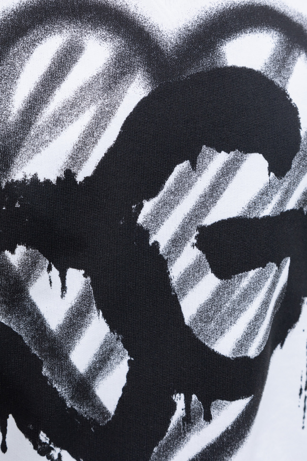 White crewneck sweatshirt from Dolce & Gabbana. Made of cotton, this long sleeve design features a black logo print, ribbed edges and heart motif with a spray paint effect.
