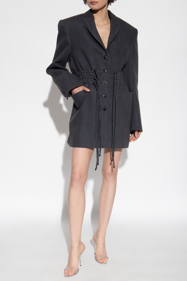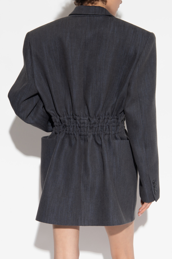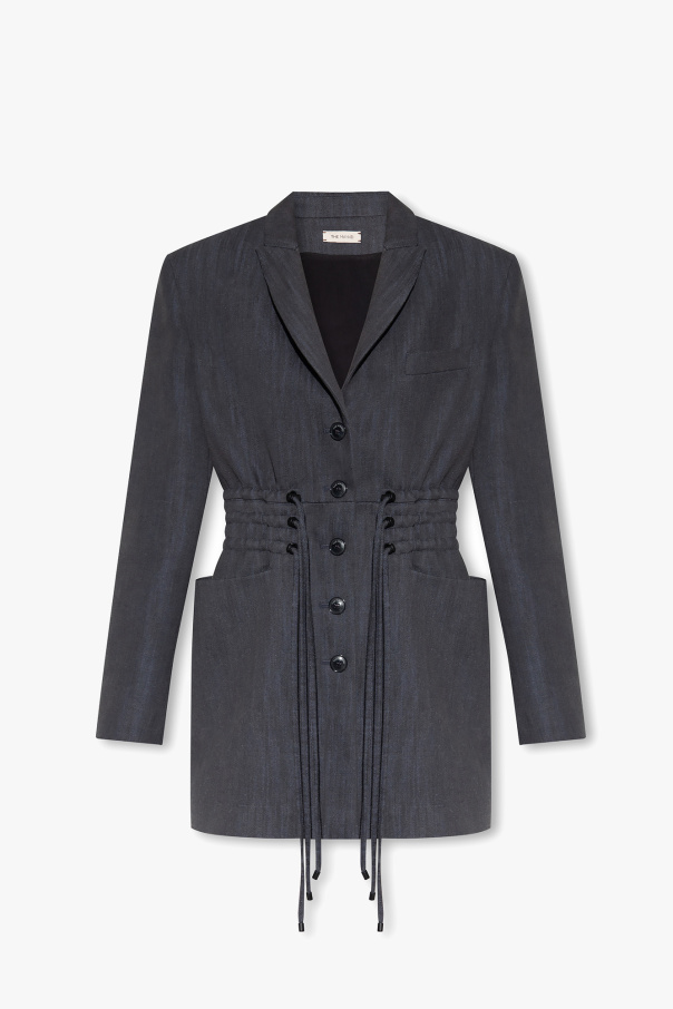Navy ‘Ibrid’ blazer from The Mannei. Made of cotton, this long sleeve design features button fastenings, a drawstring waist and padded shoulders.