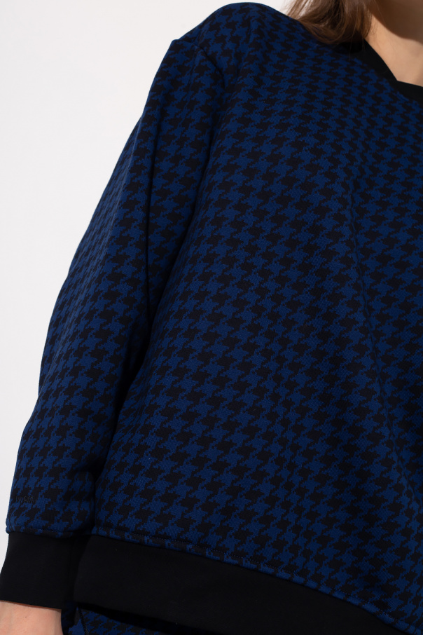 Navy and black crewneck sweatshirt from ADIDAS Originals x Ivy Park. Made of cotton, this garment is enriched by a decorative geometric pattern and ribbed trims at the neck, hem and cuffs.