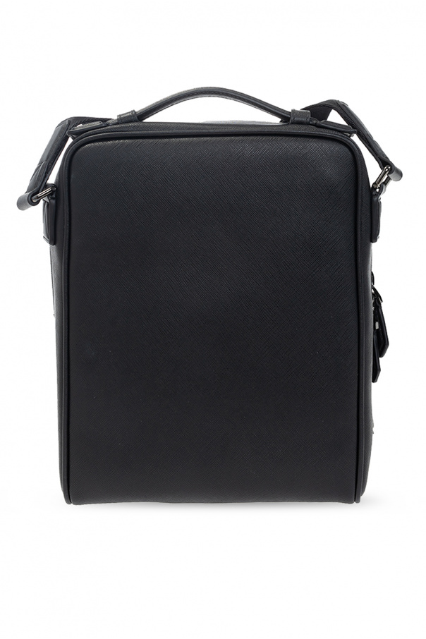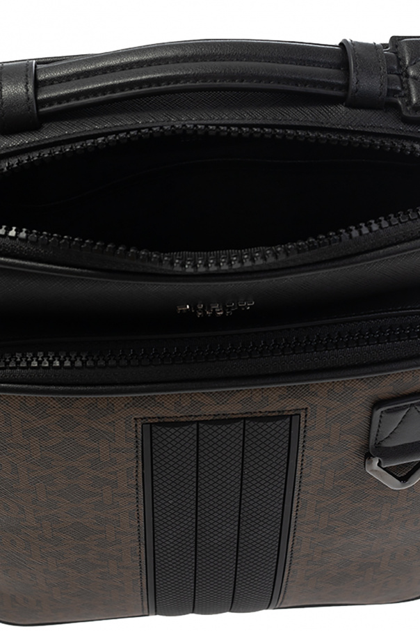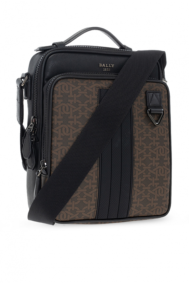 Black and brown shoulder bag from Bally. Fastened with a zip, this garment is decorated with a pattern and logo appliqué. It is complete with an adjustable strap, front zip pocket, silver-tone metal hardware and one internal compartment with one slip pocket and one zip pocket.