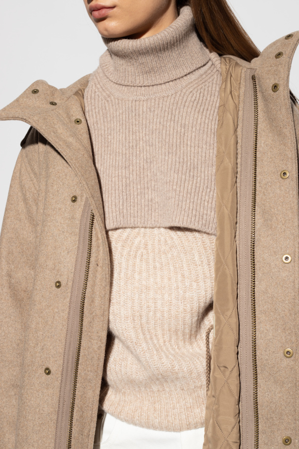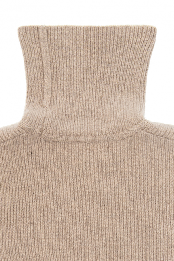 Beige tube scarf from Samsoe Samsoe. Made of wool, this item features ribbed detailing.