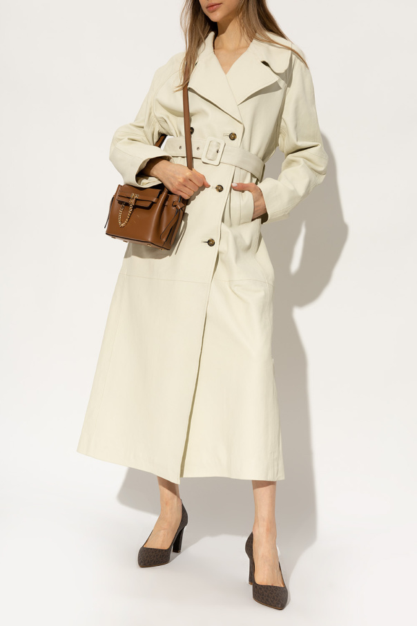 Brown and beige ‘Milly’ pumps from Michael Michael Kors. Made of fabric inlaid with gold-tone lurex threads, this pair has a pointed toe, gold-tone logo detail and brown rubber sole.