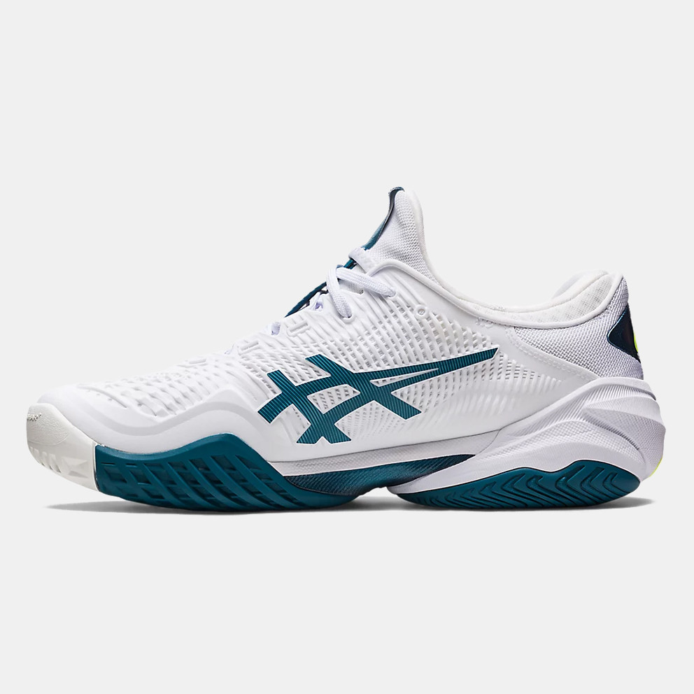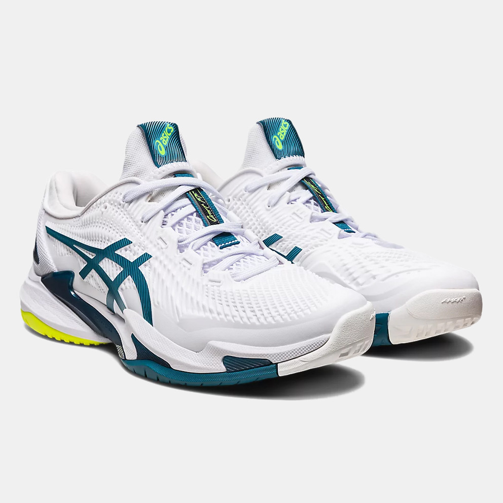 The Asics Court FF 3 Novak Clay men's tennis shoes are designed around Novak Djokovic's style of play.They allow you to move harder and recover faster between hits. They create a stable landing and reduce the load exerted on the body. With good grip on the outer sole and system TWISTRUSS support, you can push off the ground with more force. This helps you recover quickly and return to your ready position more smoothly.