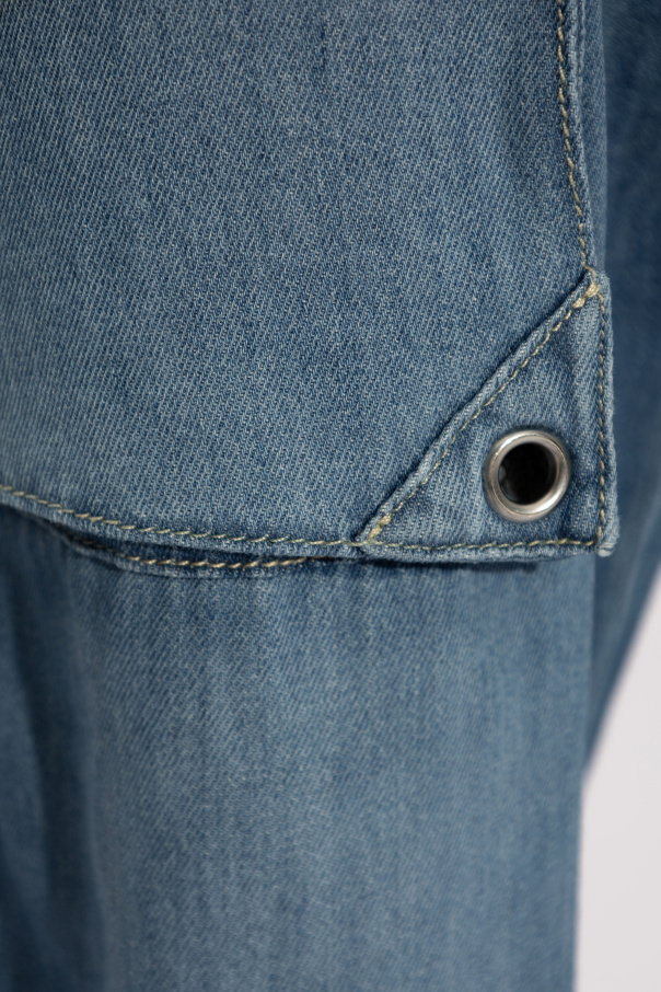Introducing the ‘Jolande’ Boyfriend Jeans by Isabel Marant, an epitome of casual luxury. Crafted from 100% cotton, these jeans offer unrivaled comfort and durability, making them a staple in any discerning wardrobe. Their relaxed fit is a signature of the Boyfriend cut, designed to provide a flattering yet comfortable silhouette. The ‘Jolande’ jeans are adorned with a mesmerizing array of blue hues, achieved through a sophisticated stone-washed technique, which lends each pair a unique, gently distressed look. Classic features such as metal buttons, rivets, and a zip fly are complemented by the jeans’ distinct stitching in a lighter contrasting shade, enhancing their overall appeal. Functionality meets style with the inclusion of multiple pockets: two traditional front pockets, two patch pockets at the back, and additional larger pockets on the legs. One of these is securely fastened with a zipper, adding a practical touch to the design. An eye-catching metal detail, possibly a ventilating grommet or decorative element, on one pocket underscores the meticulous attention to detail that is a hallmark of Isabel Marant\'s design philosophy. Why Purchase the ‘Jolande’ Boyfriend Jeans? Exclusive Design: Each pair showcases the exceptional craftsmanship and innovative washing technique that sets Isabel Marant apart. Functional Elegance: The practical arrangement of pockets, including a zippered one, blends utility with fashion. Comfort and Durability: Made from 100% cotton, these jeans guarantee both comfort and longevity. Signature Detailing: Features such as the unique metal element add a distinctive touch, making these jeans truly one-of-a-kind.