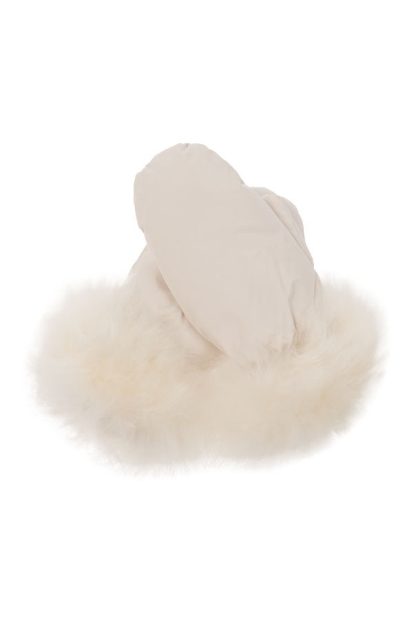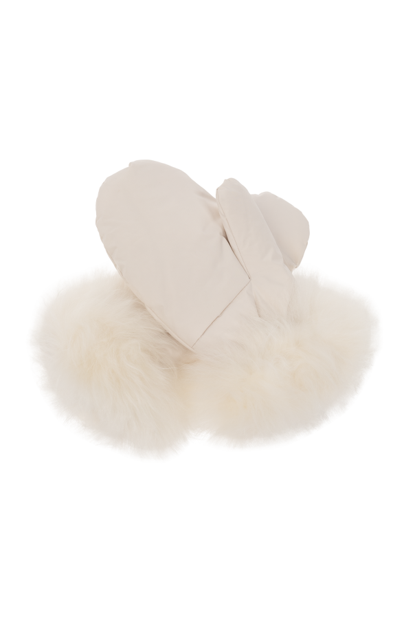 White gloves from Yves Salomon. Insulated with natural duck feathers and down, this design is trimmed with lamb fur.
