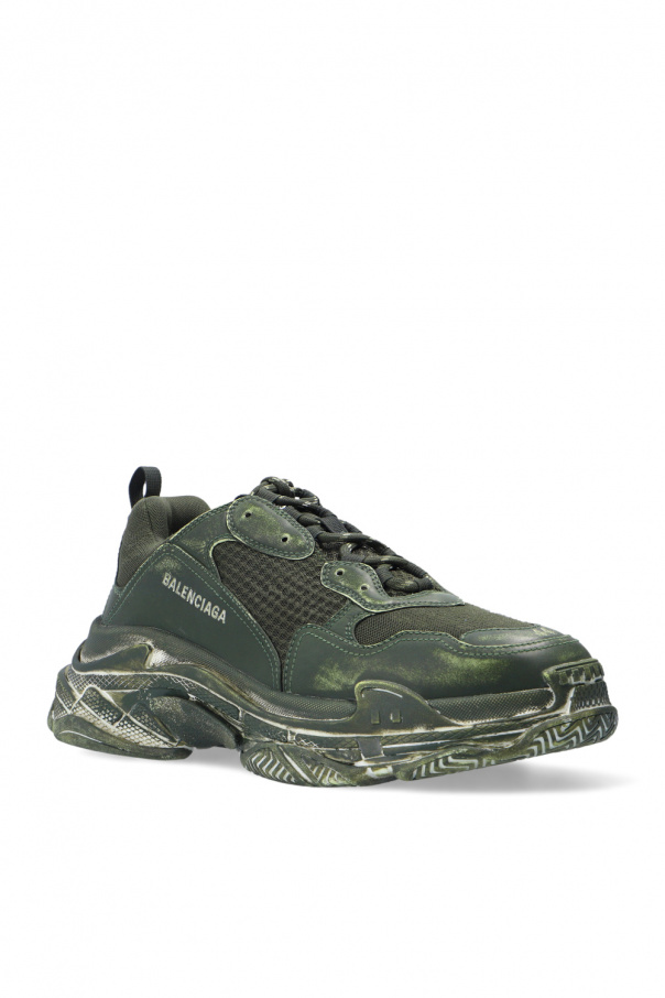 Dark green ‘Triple S’ sneakers from Balenciaga. Crafted from mesh, this model features a white logo embroidery and rubber sole in dark green and white.