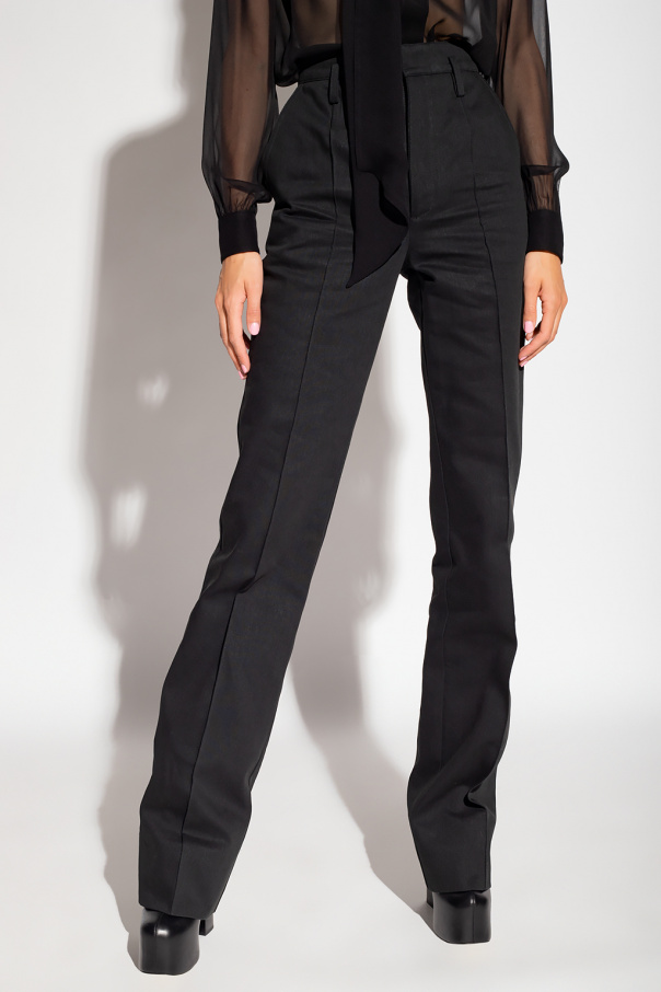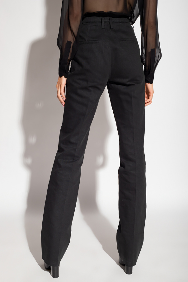 Black jeans from Saint Laurent. Falling with slightly flared legs, this pair features a zip fly with a button and hook, four slip pockets and stitching details on the front.