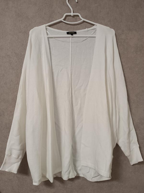 Белый вязаный кардиган в рубчик от бренда More&More.В очень хорошем состоянии, почти идеальный но есть небольшой нюанс ( показано на крайнем фото) Размер указан 44 M, идёт и на L. на S красиво смотрится как оверсайз. 💯 хлопок.