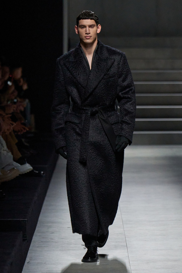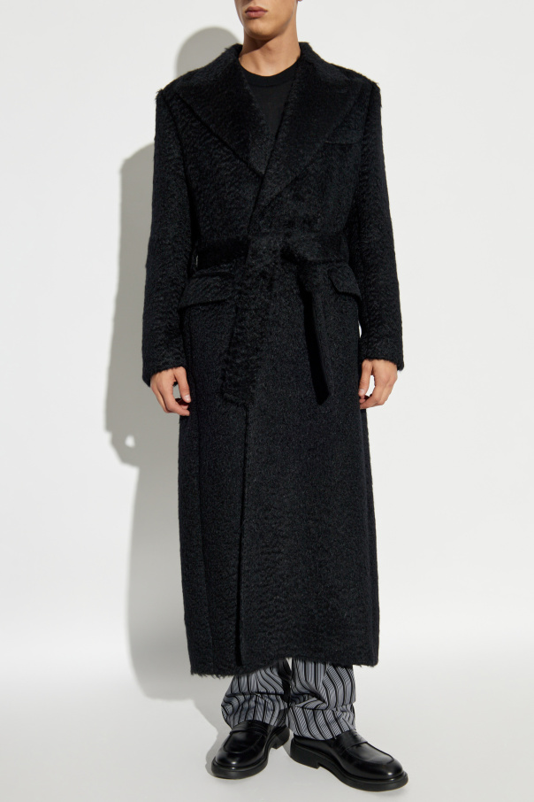 Introducing the epitome of sophistication and timeless elegance—the Wool Finish Black Coat by Dolce & Gabbana. This exquisite piece, hailing from the renowned Italian fashion house founded in 1985 by Domenico Dolce and Stefano Gabbana, redefines luxury with its meticulous craftsmanship and unparalleled design. Crafted from premium quality wool, the coat boasts a soft, plush texture that is visibly evident in close-up images. Its classic long silhouette, extending to the ankles or just above, and a slightly tailored fit, exude an air of refined elegance. The deep black hue ensures versatility, making it an impeccable choice for both formal and everyday ensembles. Key details include a wide collar that enhances its sophisticated look, a woolen belt for a customized fit, and deep side pockets offering both functionality and style. The coat features a simple, unadorned back and is fastened with sleek snap buttons, ensuring a smooth, modern finish. Why Choose This Product? High-Quality Materials: Crafted from a luxurious blend of wool, nylon, and mohair. Timeless Design: Classic long cut with a slightly tailored fit. Elegant Details: Wide collar, woolen belt, and deep side pockets. Versatile Color: Deep black for a sophisticated, universal appeal. Renowned Brand: Designed by Dolce & Gabbana, a hallmark of luxury and elegance.