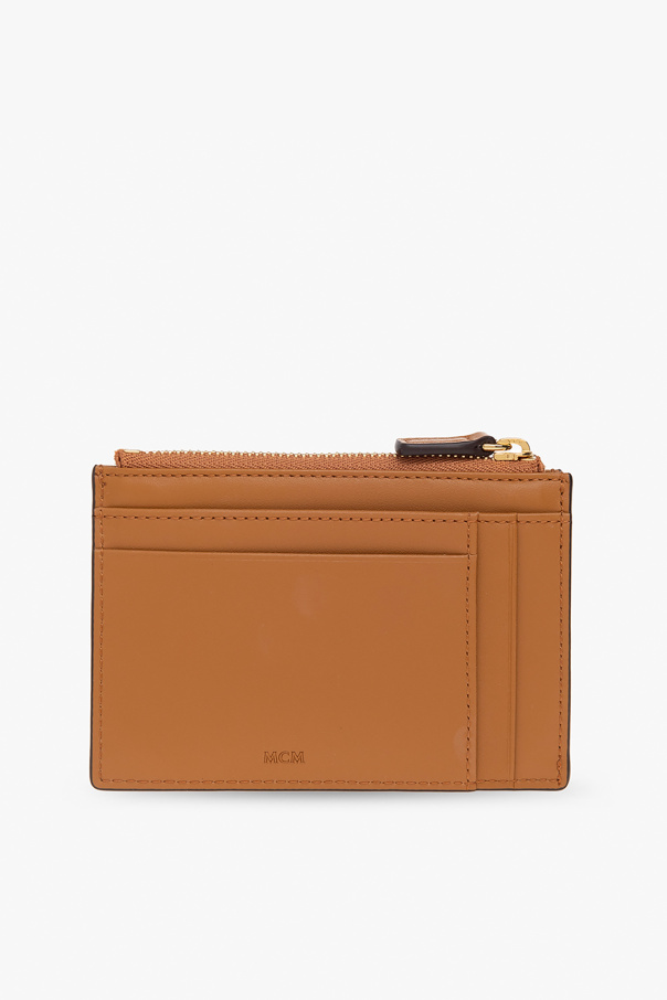 Brown card case from MCM. Crafted from faux-leather with the brand\'s signature \'Visetos\' pattern in black, this item features one zip coin pocket and one slip pocket, three card slots and an embossed logo at the back.